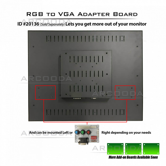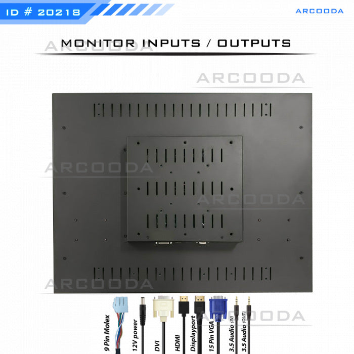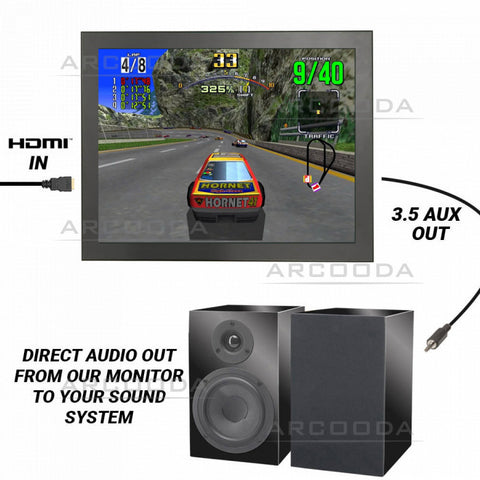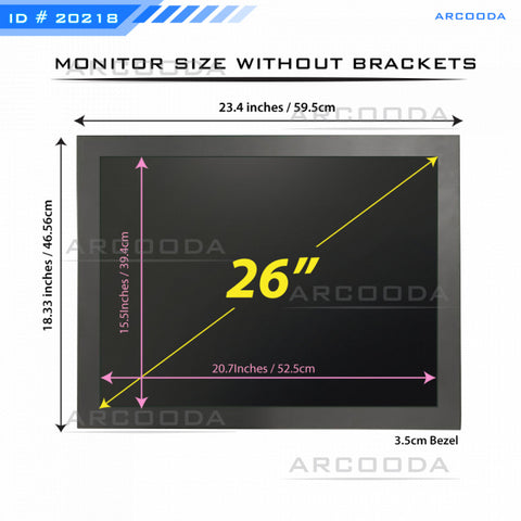 This professional commercial grade 26-inch LCD monitor is designed for all arcade machines and retro game enthusiasts, serving as a direct replacement for CRT tube monitors. The 26" arcade LCD panel offers a 4:3 viewing ratio with RGB, VGA, and HDMI inputs, supporting 15 kHz, 24 kHz, 31 kHz, and high definition up to1440x1080 resolution. It features low response time, great color depth, and custom arcade monitor firmware. This arcade monitor is manufactured by Arcooda and comes with their custom monitor software for arcade game boards.